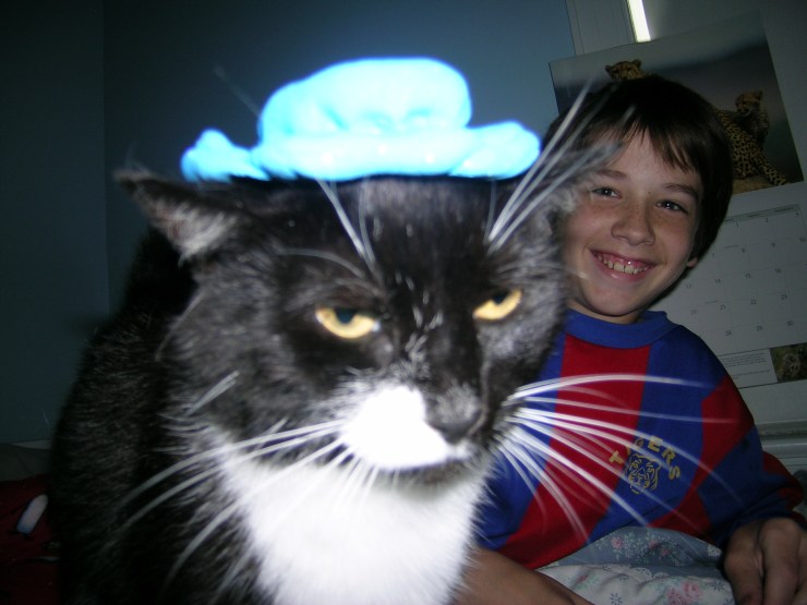 Looks like my 14-year-old cat named Shadow. Without the cute hat!